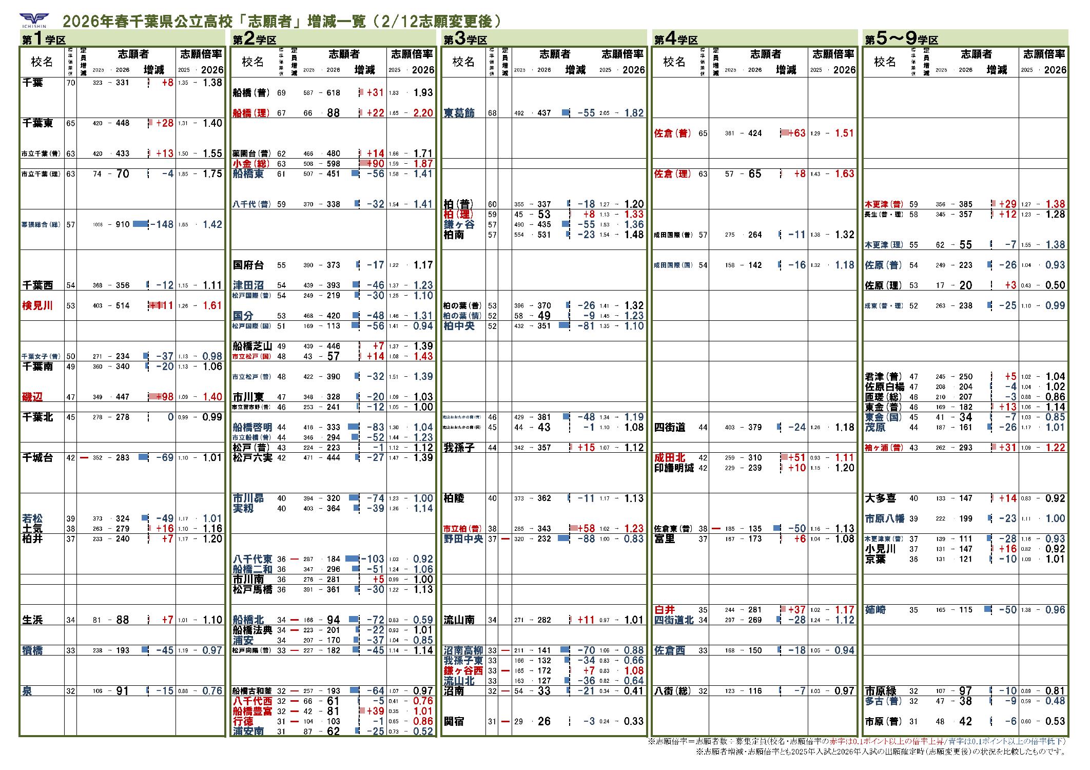 ⇒2026千葉公立高校・志願状況一覧(2/12志願変更後)[PDF]