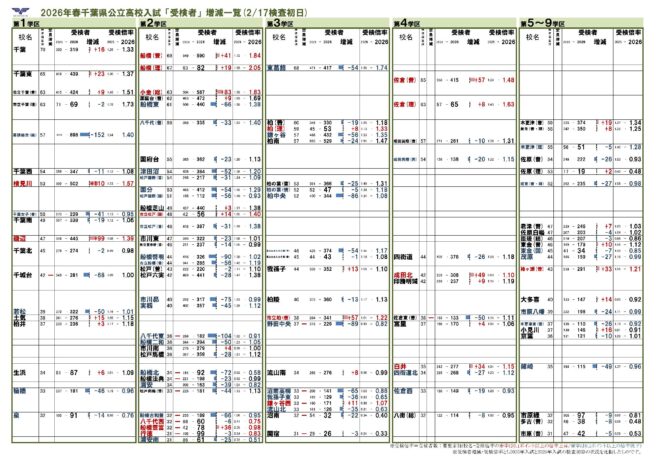 ⇒倍率上下がひと目でわかる!2026年春千葉県公立高校 志望者増減一覧(PDF)
