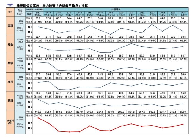 神奈川県公立高校入試問題 過去の平均点